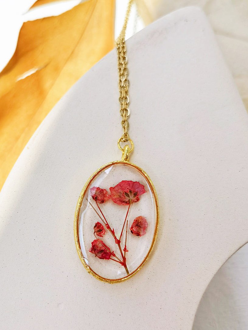 This beautiful necklace features a handmade red narcissus bud pendant, adding a touch of unique craftsmanship to your look. Crafted with care, this necklace is a stunning statement piece that showcases your individual style. Elevate any outfit with the elegant and timeless design of this pendant necklace.